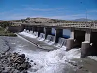 The river is part of the Llancanelo basin, which has an area of 10,602 km² and is located at 35°30′S 70°00′W / 35.500°S 70.000°W. Its flow increases in the summer (29.00 m³/s), when the ice begins to melt, and decreases in the winter (6.31 m³/s). Near the city of Malargüe, it is contained by the Blas Brisoli Dam, which derives water for irrigation. Trout can be found in this river and there is a trout hatchery co-located with the dam.