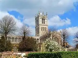 Sargent worked first as an organist at St Mary's Church, Melton Mowbray, Leicestershire, from 1914 to 1924, except for eight months in 1918 when he served as a private in the Durham Light Infantry during the First World War.[6] He was chosen for the organist post over more than 150 other applicants.[7] In addition to his organ playing he worked on many musical projects in Leicester, Melton Mowbray and Stamford, where he not only conducted but also produced the operas of Gilbert and Sullivan and others for amateur societies.[8] The Prince of Wales and his entourage often hunted in Leicestershire and watched the annual Gilbert and Sullivan productions there, together with the Duke of York and other members of the Royal Family.[9] At the age of 24 Sargent became England's youngest Doctor of Music, with a degree from Durham.[10]