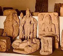 The oldest known sculpture of Vishnu with four-arm figure holding shankha, chakra and gada dated to c. 200 BCE was found in Malhar, Chhattisgarh.[1]