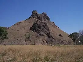 Malheur Butte is an extinct volcano located in Malheur County, Oregon. Between 20 and 15 million years ago, the region from north-central Washington to northeastern California experienced a series of volcanic eruptions and basalt lava floods that covered thousands of square miles. These ancient lava floods often dammed streams, creating lakes and swamps that may have lasted for millions of years before filling with sediment or draining as erosion slowly lowered their outlets. The western Snake River plain contained many such lakes, and geologists believe that between 8 and 2 million years ago, "Lake Idaho" covered much of central eastern Oregon. Sediment deposited in this lake once covered Malheur Butte, and during the last 2 million years the Malheur River and other eroding forces slowly exposed and shaped today's landmark.