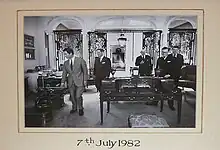 The Prince of Wales visiting Mallett in 1982 with Lanto Synge, Francis Egerton, Peter Maitland and Peter Dixon