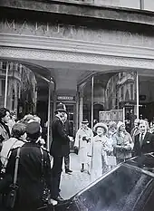 In 1908 the Franco-British Exhibition (1908) was held at Earls Court in London, and the firm took a stand there. This was such a successful venture that Walter Mallett decided to open a permanent shop in London, and he took a lease of premises at 40 New Bond Street,[4] which contained showrooms on two floors displaying stock of furniture including mirrors, pictures and objects, each room arranged to re-create the atmosphere of a private house.