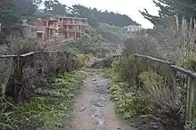Malpaso Creek is a small, coastal stream 5 miles (8.0 km) south of Carmel in Monterey County, California, United States. It is generally regarded as the northern border of Big Sur in central coastal California.[2][3] A low grade bituminous coal deposit was found in upper Malpaso Canyon in 1874. Actor and director Clint Eastwood bought 650 acres (260 ha) of land in the vicinity of the creek and named his production company Malpaso Productions after the creek.