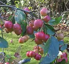 Malus × robusta, called Siberian crab apple along with other members of its genus, is a hybrid species of flowering plant in the family Rosaceae.[1] It is the result of a cross between Malus baccata (Siberian crab apple) and Malus prunifolia (plum-leaved crab apple).[2] It is being studied for its resistance potential to fire blight.[3] Known for its attractive fruit that remain on the tree well into winter, its cultivar 'Red Sentinel' has gained the Royal Horticultural Society's Award of Garden Merit as an ornamental.[4]