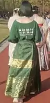 Mamianqun (simplified Chinese: 马面裙; traditional Chinese: 馬面裙; pinyin: mǎmiànqún; lit. 'horse face skirt'), is a type of traditional Chinese skirt. It is also known as mamianzhequn (simplified Chinese: 马面褶裙; traditional Chinese: 馬面褶裙; lit. 'horse-face pleated skirt'), but is sometimes simply referred as 'apron' (Chinese: 围裙; pinyin: wéiqún; lit. 'apron'), a generic term in English to refer to any Chinese-style skirt, or 'paired apron' in English although they are not aprons as defined in the dictionary. The Mamianqun is a type of qun (Chinese: 裙; pinyin: qún; lit. 'skirt') a traditional Chinese skirt worn by the Han Chinese women as a lower garment item in Hanfu[1][2]: 54 [3] and is one of the main representative styles of ancient Chinese-style skirts.[4] It originated in the Song and Liao dynasties and became popular due to its functionality and its aesthetics style.[5] It continued to be worn in the Yuan,[3] Ming, and Qing dynasties where it was a typical style of skirt for women[6] and was favoured for its unique aesthetic style and functionality.[5] Following the fall of the Qing dynasty, the mamianqun continued to be worn in the Republic of China, and only disappeared in the 1920s and 1930s [5] following the increased popularity of the cheongsam.[7] As a type of xifu, Chinese opera costumes, the mamianqun maintains its long tradition and continues to be worn nowadays.[2]: 54 In the 21st century, the mamianqun regained popularity with the emergence of the Hanfu movement.[8][9] The mamianqun has experienced various fashion changes throughout history.[10] It was typically paired with ku, Chinese trousers and Chinese jackets,[10][3][11] typically either the ao or gua.