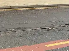 A pothole reveals old tram tracks under Lever Street, Manchester