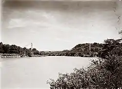 Cimandiri River with an iron bridge near Pelabuhan Ratu Bay (formerly: Wijnkoops-baai), 1920–1931.