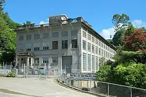 The scheme was first considered by Peter Seton Hay and developed by Frederick Kissel.[1] Earthquake strengthening was done in 1983 and 2015.[9] In 2004[10] the original two smaller generating sets were replaced by a 26 MW (35,000 hp) Francis turbine unit and, with upgrades, the station capacity is now 38 MW (51,000 hp).[1]