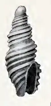 (Original description) The shell has a wax yellow color. The 1½ whorls of the protoconch are well rounded and apparently smooth. The subsequent whorls are strongly, tabulatedly shouldered. They are marked by strong, spiral cords, of which 3 occur between the angle of the shoulder and the suture on all the whorls. These are a little wider than the spaces that separate them. On the middle of the tabulated shoulder, a slender spiral cord begins on the first whorl, which increases in strength until it is about half as strong as those anterior to it on the body whorl. The sutures are strongly constricted. The periphery of the body whorl is marked by a cord fully as strong as those posterior to it. The base of the shell is moderately prolonged, slightly rounded, marked by three spiral cords which are almost as strong as those on the spire and of about equal spacing with them. The aperture is feebly channeled posteriorly, decidedly so anteriorly. The outer lip is rendered sinuous by the spiral cords. The inner lip and parietal wall are covered with a thin callus.[1]