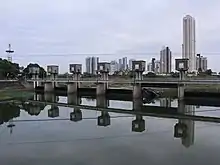The Manggahan Floodway is an artificially constructed waterway in Metro Manila, Philippines. The floodway was built in 1986,[1] with the cost of 1.1 billion pesos, in order to reduce flooding along the Pasig River during the rainy season, by diverting the peak water flows of the Marikina River to Laguna de Bay, which serves as a temporary reservoir.[2][3] In case the water level on the lake is higher than the Marikina River, the floodway can also reverse the flow.