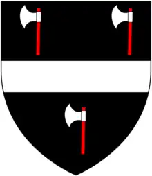 Arms of Wrey of Trebeigh, Cornwall, and Tawstock, Devon: Sable, a fesse between three pole-axes argent helved gules[73]
