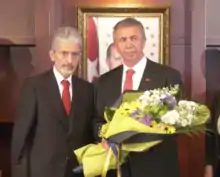 Mansur Yavaş taking over as Mayor of Ankara from outgoing mayor Mustafa Tuna during an official handover ceremony on 8 April 2019