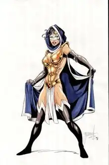 Boneyard tries to force Mantra to become his fourth wife, but she escapes with help of Warstrike and the local resistance.[5] Sometime later, Mantra fights a demon vassal of Boneyard that had adopted the form of a wolf cartoon character. Mantra and the demon fight in a cartoon-like reality, and the demon is banished to Boneyard's realm.[6] Mantra later joins the government agency Aladdin.[7]