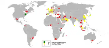 Other scholars suggest trading from India to West Asia and Eastern Europe was active between the 14th and 18th centuries.[90][91][92] During this period, Indian traders settled in Surakhani, a suburb of greater Baku, Azerbaijan. These traders built a Hindu temple, which suggests commerce was active and prosperous for Indians by the 17th century.[93][94][95][96]