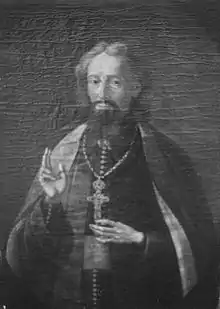 At the death of his predecessor, he was appointed on 8 February 1743 as vicar general by the Latin Bishop of Eger:[2] as at that time, following the Union of Uzhhorod, the eparch of Mukacheve was formally an apostolic vicar of the Latin diocese.[3] In a few months he was elected to the position by the clergy, designated by the Empress Maria Theresa, and so confirmed by Pope Benedict XIV on 5 September 1743.[4] He received the titular see of Rhosus and was consecrated bishop on 9 December 1743[5] by the bishop of Făgăraş, Inocenţiu Micu-Klein.[6] A short time before consecration, Mykhaylo Olshavskyi entered the Order of Saint Basil the Great and took the religious name of Manuil.[1]