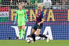 In October 2018, León scored her first ever Champions League goal in the Round of 16 against Glasgow City.[20] In 2019, León played the first Champions League Final of her career against Lyon, where Barcelona conceded four goals within the first 30 minutes of the match, and ultimately lost 1–4 against the European giants. Following the conclusion of the Champions League, León renewed her contract with Barcelona for three more years until 2022.[21]
