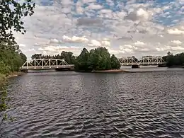 Maple Island is connected to both New Edinburgh and Green Island by the Minto Bridges, built between 1900 and 1902. Other than the Bridges, the only structures on the island are the Maple Island Hungarian Memorial and RISE, a public art sculpture.