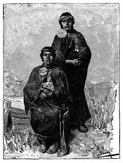 Tomás Guevara has postulated another unproven hypothesis claiming that early Mapuches dwelled at the coast due to abundant marine resources and did only later moved inland following large rivers.[9] Guevara adds that Mapuches would be descendants of northern Changos, a poorly known coastal people, who moved southwards.[10] This hypothesis is supported by tenuous linguistic evidence linking a language of 19th century Changos (called Chilueno or Arauco) with Mapudungun.[11]