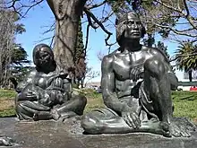 ![]() Guyunusa with her baby daughter and Tacuavé. Part of the sculpture Los últimos charrúas by Edmundo Prati, Gervasio Furest and Enrique Lussich; Parque Prado, Montevideo. | |