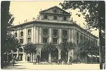 When in Zaragoza Urraca befriended María Pilar Ros Martínez;[120] she was Catalan herself and persuaded Urraca to move together to Barcelona.[121] In 1939 or 1940 Urraca settled with her parents in the Catalan capital.[122] In the new setting she turned her home into a cultural circle. In the 1940s Urraca staged regular reunions at home; they were intended as artistic events, often with prestigious guests invited and covering music, painting and theatre.[123] She did not resume teaching; in 1940 Urraca started to deliver public lectures.[124] Advertised in the press as „charlas-recitales", they were intended as homages to patriotic virtues. Applauded in the newspapers as "ilustra charlista", she continued on commercial basis until the late 1940s,[125] appearing also in Alava[126] or Leon.[127] The event, typically formatted as a semi-scholarly lecture, in her case was a theatrical monodrama, a genre of stage performance and actually delivered in places like Teatro Olympia.[128]