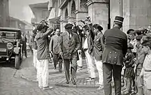 Urraca considered the fall of the monarchy a national disaster.[44] Almost immediately she engaged in public rallies either in favor of the monarchy[45] or protesting against militantly secular policy of the Republic.[46] Already in May 1931 she was detained and fined 500 pesetas for promoting a meeting classified as non-constitutional conspiracy.[47] She seemed politically disoriented; due to her earlier engagements she was considered sort of a socialist,[48] ACM record made her look towards Christian organizations, in the April 1931 elections Urraca worked as propagandist supporting Alfonsine candidates[49] and she neared José María Albiñana and his Legionarios.[50] In late 1931 she co-organized Agrupación de Defensa Femenina, a conservative female organization grouping Alfonsine monarchists, Carlists and the Basque Emakumes,[51] and was later asked to write the program draft.[52] Extremely active, she helped to organize 50 meetings during four months.[53] In 1932 she was fired as labor inspector.[54]