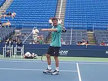 Safin was also known for his emotional outbursts during matches, and smashed numerous rackets.[54][55][56] Safin is estimated to have smashed 48 racquets in 1999.[56] In 2011, Safin stated that during his career he broke 1055 racquets.[13]