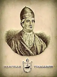 Marcello Tegalliano (Latin: Marcellus Tegalianus; died 726) was, according to tradition, the second Doge of Venice (717–726). He is described as having hailed from Eraclea, and during his nine-year reign was apparently in great disagreement with the nearby Longobards.[1] He died in 726 and was succeeded by Orso Ipato.