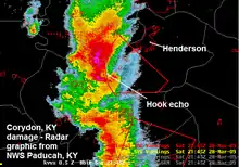 Radar image of the supercell thunderstorm which spawned the EF3 Corydon, Kentucky tornado