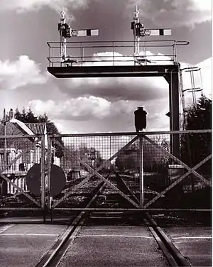 Marchwood railway station opened on the Fawley Branch Line beside Main Road on 20 July 1925. The station was closed by the Beeching Axe on 14 February 1966 and has remained closed since.[9] Freight trains still operate on the line and a set of manual level crossing gates are still used on Main Road. Hampshire County Council have agreed to fund a study into reopening the Waterside line between Totton and Hythe, with a stop at Marchwood.[10]