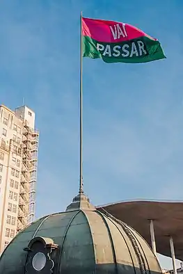 - ↑ VAI PASSAR (?) flag on Mangueira's Facebook page