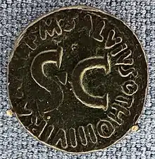 - ↑ Hobler, Francis (1860). Records of Roman History, from Cnaeus Pompeius to Tiberius Constantinus, as Exhibited on the Roman Coins. Vol. 1. Nichols. p. 34.