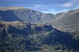 ![]() Mardale Ill Bell (left) from Kentmere. Nan Bield Pass crosses the lowest point in the background ridge. | |