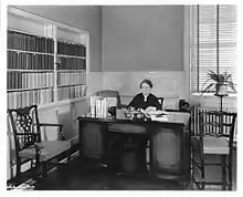 Margaret Cross Norton was also a founding member of the Society of American Archivists, acting in a variety of roles throughout her decades-long tenure. Those roles included the society's first vice president from 1936 to 1938, the society's fourth president from 1943 to 1945), and a Council member and editor of the American Archivist from 1937 to 1942 and 1946 respectively.[7] Her activities in the American Historical Association (AHA), the American Library Association (ALA) and the National Association of State Libraries (NASL) are also well documented. Through these associations, she published writings and made public addresses broadcasting her focus on the utilitarian value of archives and a desire to distinguish the archive professionals as separate from historians and librarians.[3] One such address at the 1929 annual AHA meeting was met with skepticism. Six months later, however, a very similar speech with accompanying article was accepted and well regarded by the NASL. This and many other papers became landmarks for the push towards professional recognition of archivists as skilled professionals. She taught the first ever course in archivology offered in an American library school in 1940 at Columbia University.[8]