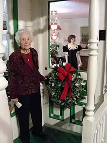 ![]() Dunning stands next to the Plymouth Historical Museum exhibit named for her. The mannequin represents Margaret when she was 30. | |