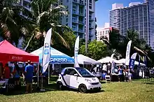 Margaret Pace Park is an 8-acre (3.2 ha) urban park located in the Arts & Entertainment District and Edgewater district of Greater Downtown Miami, Florida, U.S.A. The park is located on Biscayne Bay and has tennis courts as well as personal fitness equipment.[1] It was created in the late 1960s and named in honor of Margaret Pace, who was a founder and past president of the Miami Garden Club. Pace was also chairwoman of Royal Palm State Park, which later became part of Everglades National Park, according to the Biscayne Times. A former vice president the Miami Women’s Club, which is located next door, Pace fought development of the adjoining bayfront green space, which became the park and was named in her honor, according to the Miami Herald.[2] Directly across North Bayshore Drive, three large condominium complexes that were built in the 2000s housing an economic bubble overlook the park. The park underwent a $4 million renovation during this time.[3] An even larger building is under construction adjacent the park As of 2015.[4] The historic Miami Women's Club building is located directly to the south of the park.