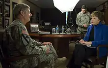 Margaret Warner (right) interviewing General Walter L. Sharp during a documentary on the Republic of Korea (2011)