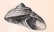 Drawing with an apertural view of a shell of Margarites vorticiferus