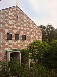 After World War II, the Catholic population of Seckbach grew, and a new church was planned to meet the need. It was designed by the Frankfurt architects Heinrich Horvatin and Carl Rummel.[2] The ground-breaking was on 16 December 1951. The consecration was on 27 September 1953 by Weihbischof Walther Kampe. It became part of the "Pfarrei neuen Typs" (new type parish) St. Josef in Bornheim on 1 Januar 2015,[3] along with Heilig-Kreuz in Bornheim, Heilig Geist in Riederwald and Herz Jesu in Frankfurt-Fechenheim.