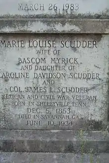 Marie Louise Scudder Myrick was interred in the Myrick Family tomb following her funeral in Savannah.
