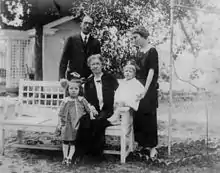 The Myrick Family in Savannah, Georgia. Standing: Shelby Myrick and his wife Mary Ruth Myrick. Seated: Marie Louis Myrick with her grandchildren Mary Ruth (left) and Shelby, Jr (Right)