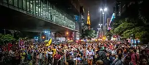 Thousands took to the streets in coordinated protests across Brazil, and both Amnesty International and Human Rights Watch condemned her killing.[25][40] In the United States, Black feminist scholars published a statement honouring Marielle as "yet another martyr" for the Movement for Black Lives.[41]