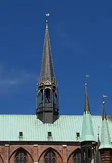 The set of bells in the North Tower now consists of seven bells. It ranks among the largest and deepest-pitched of its kind in northern Germany. The three baroque bells originate from Danzig churches, (Gratia Dei and Dominicalis from St. John's and Osanna from St. Mary's). After the Second World War, these bells from the "Hamburger bell cemetery" were hung in the tower as temporary replacement bells.