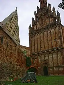 The single-aisled church is a Brick Gothic structure with Romanesque elements. In 1565, after several fires, it was reinstated as the parish church of Mühlberg old town. The refectory dating from the 13th / 14th centuries was altered for agricultural purposes in 1820. From 1992, restoration of the abbey church and of the refectory has been undertaken.