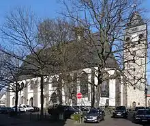 A parish is attested in Lich in the year 1239, which presupposes a church existed by that date.[3] In 1316, the Marienstift was founded by Philip III of Falkenstein, as a collegiate church (German: Kollegiatstift) with ten canons, which was intended to educate young men for the priesthood. Three neighbouring churches were incorporated along with Lich.[4] A large amount of property of the surrounding churches and districts was donated for the maintenance of the college. In the year of the college's foundation, a new, stone church was begun which was roughly two-thirds the size of the present building. The hall church, with a long choir and rood screen was consecrated to Mary on 7 May 1320.[1] It survived less than two hundred years. In 1510 it was entirely demolished to make way for the construction of the present building on the same site. Only a few sections of wall in the west wall survive.[3]