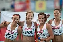Popowicz-Drapała (L) with relay team at the 2010 European Athletics Championships in Barcelona