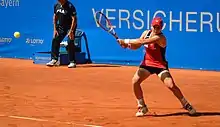 Erakovic lost in the first round of the Australian Open to Alizé Cornet. In February, she won her first WTA Tour singles tournament at the National Indoor Championships in Memphis.[9] In doing so, she became the first New Zealander to win a WTA Tour singles title since Belinda Cordwell won the 1989 Singapore Open.[10] It was to be the last time the tournament was played. Then Erakovic teamed up with former world No. 1, Cara Black, and they had immediate success together, reaching the finals of three European tournaments.