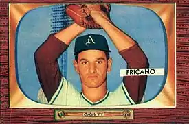 Fricano's fortunes reversed in 1954. After losing his first start of the season,[7] he was moved into the bullpen. He ended up splitting his time fairly evenly between starts and relief appearances. Facing the Washington Senators on August 23, he was cruising along, having allowed just one hit into the fifth inning. After a two out walk to Eddie Yost the Senators followed with three consecutive singles to take a 3–1 lead. He ended up losing the game, and seeing his record fall to 5–9, and his ERA rise to 5.17.[8]