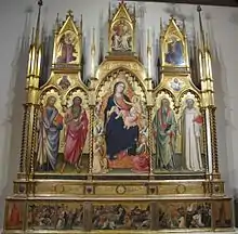 Mariotto was a member of the Physicians and Apothecaries Guild sometime between 1386 and 1408, and was also a member of the Company of Saint Luke in 1408.[3] Many extant documents show that he was a popular and much sought after painter in both public and private affairs in Florence. Mariotto is thought to have been principally responsible for the artwork in the cathedral, although most of these paintings have since been tarnished.[2] Mariotto was an avid altarpiece painter, and in 1398 he painted an altarpiece for the chapel of the Madonna della Neve in Florence, commissioned by the Board of Works. He began working on this piece in 1397 and was compensated with 15 florins in partial payment for the creation of the panel for the "opera" of Saint Reparata for the altar of the new chapel of the Virgin Mary.[3] He also painted an altar piece for the Florence Cathedral around 1402–4.[2] Mariotto's uncle, Jacopo di Cione, acted as a guarantor on behalf of Mariotto for the cathedral workshop on 2 May 1398.[4]