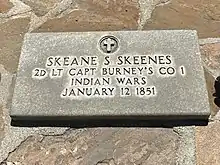 Skeane S. Skeenes was the first militia member killed in action. His remains are buried in Oakhill Cemetery in Oakhurst, California.[5]