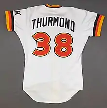 He lost Game 2 of the National League Championship Series, giving up 4 runs in 32⁄3 innings,[2] but it didn't matter in the end as the Padres overcame an 0–2 deficit in the series to beat the Chicago Cubs 3 games to 2. He was also the losing pitcher in Game 1 of the 1984 World Series against the Detroit Tigers, giving up only three runs, but only lasting 5 innings.[3] Thurmond also started Game 5, and although he only lasted 1/3 of an inning, he gave up three runs again but earned a no-decision this time.[4]